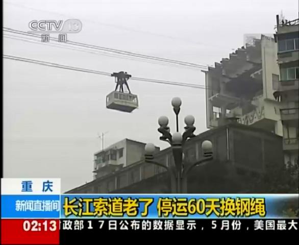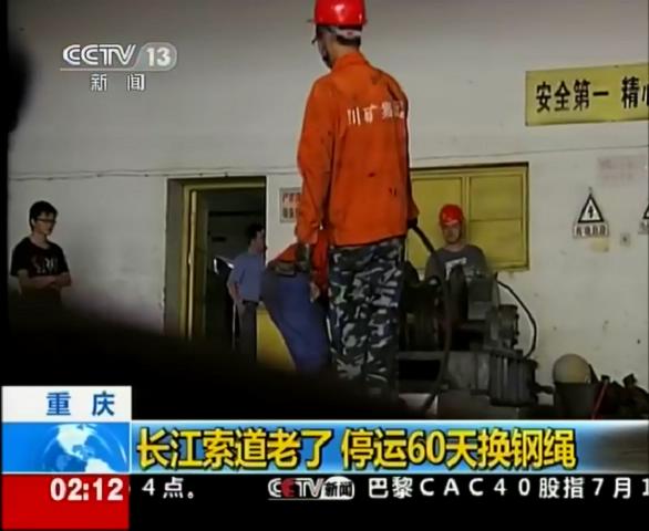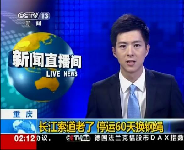2012年7月18日中央電視臺新聞頻道報道川礦集團制造和施工的重慶長江索道