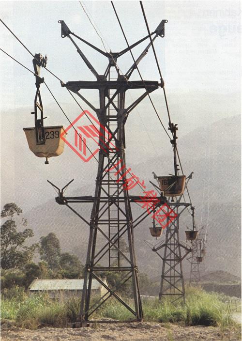 3、單線固定循環(huán)式索道系統(tǒng):吊桶固定在單一鋼索(兼負(fù)支、曳索功能)上,線上及站內(nèi)均以固定速率循環(huán)運(yùn)行。